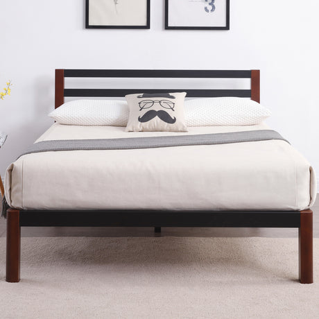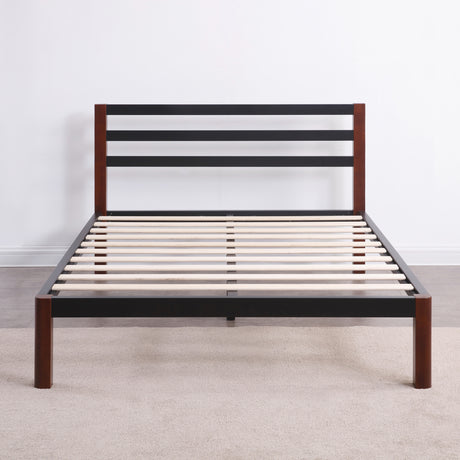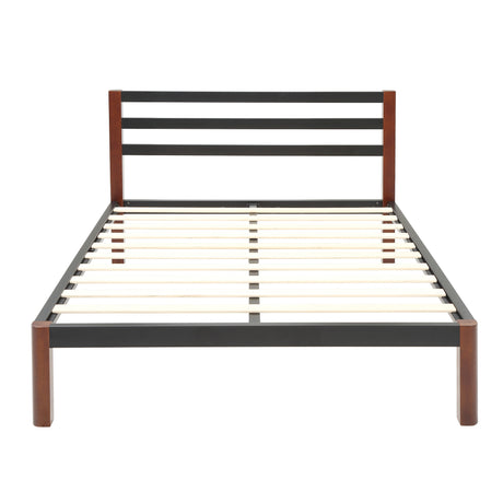 Tilbury Wood Slat and Metal Platform Bed Frame with Headboard | Mattress Foundation