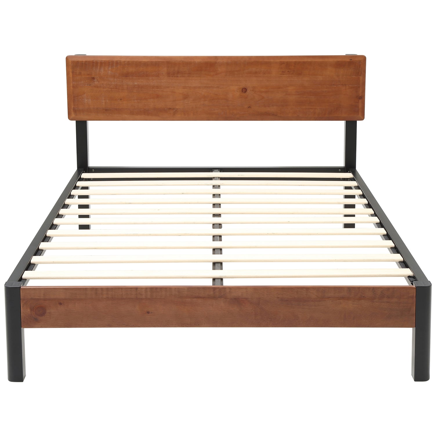 Portland Wood Slat and Metal Platform Bed Frame with Solid Wood Headboard | Mattress Foundation